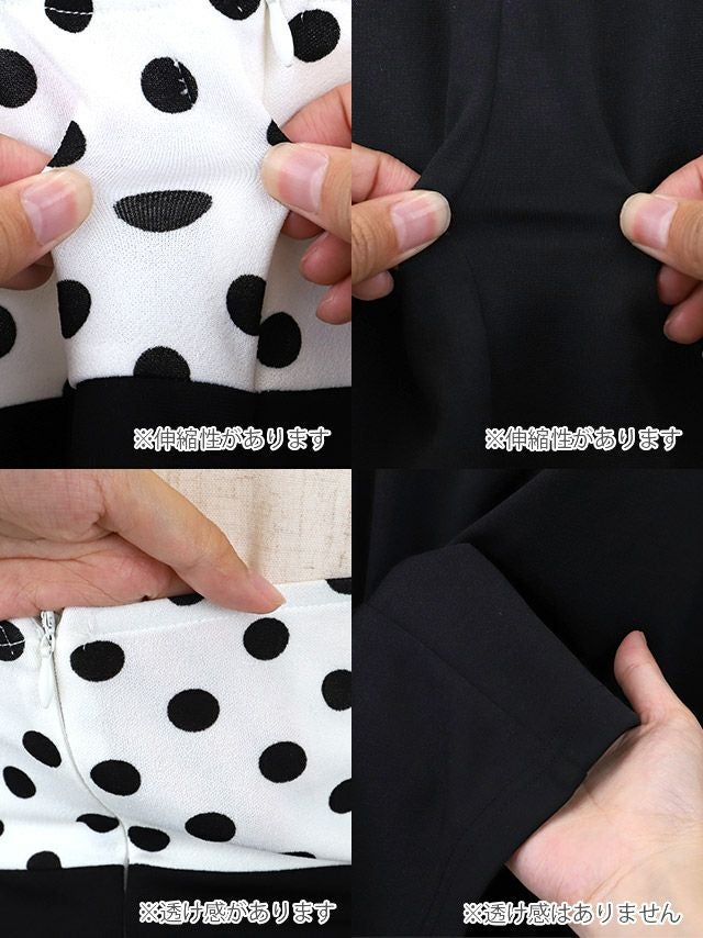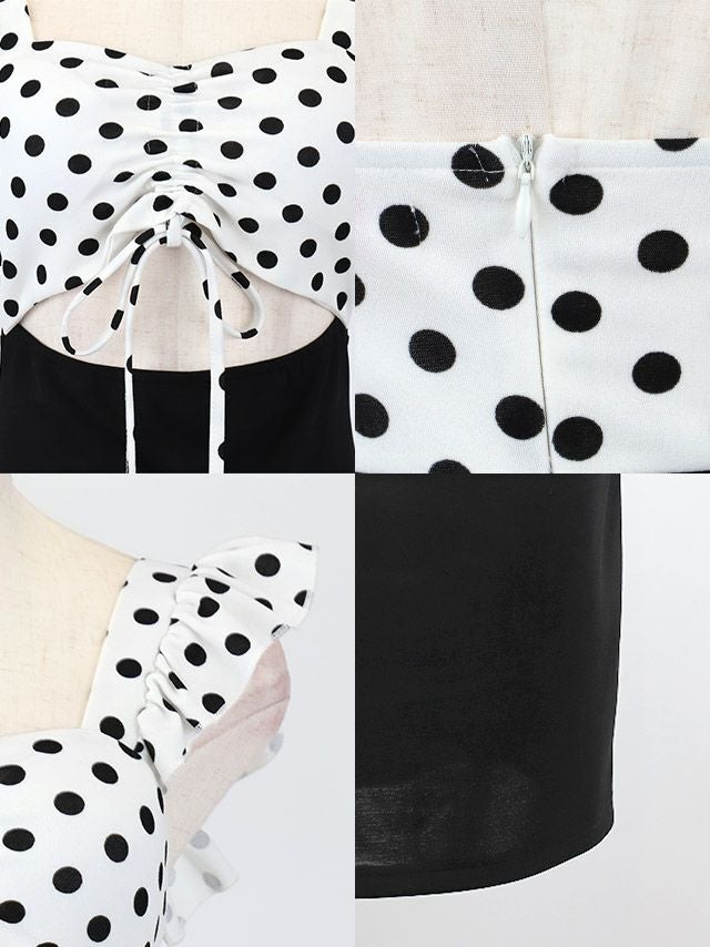ウエストカット ドット柄 袖フリル 胸元リボン セクシー タイト ミニドレスのカラー