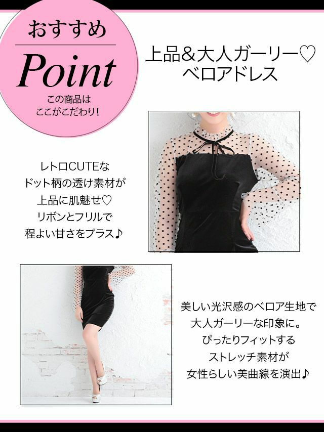 長袖ドットチュールミニ丈タイトワンピースドレス商品詳細1
