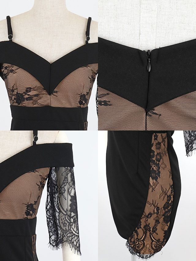 半袖 オフショルダー ヌーディーカラー フラワーレース プチプラ タイト セクシー ミニドレスのディティール