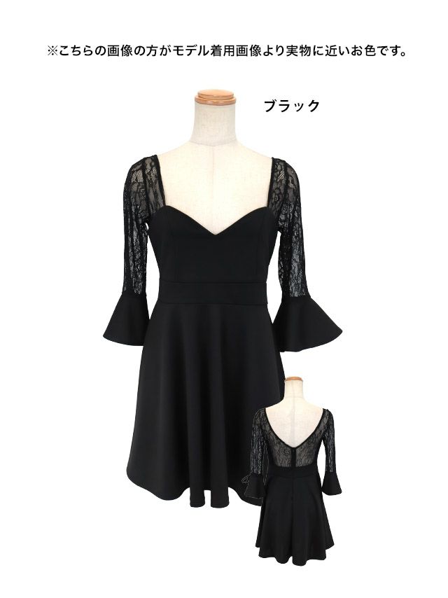 5. [SALE]袖ありレースハートカットワンカラープチプラフレアミニドレス (Mサイズ/Lサイズ)(なぎ/キャバドレス着用)[myMinette/マイミネット]