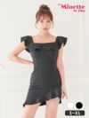 [SALE][新作]オフショルダー 2way フリル アシンメトリー タイト セクシー ミニドレス (Sサイズ~XLサイズ) (あいみん/キャバドレス着用) [myMinette/マイミネット]
