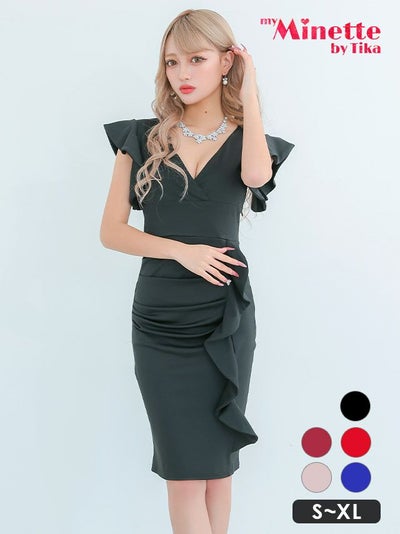 3. [SALE] 膝丈ドレス プチプラ 新人 タイト セクシー 半袖 低身長 谷間 赤 Vネック シック キャバドレス (せいせい着用/S~XLサイズ対応) | myMinette/マイミネット
