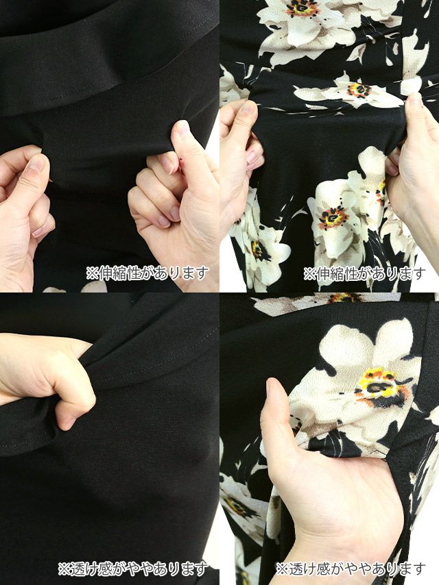 5. [SALE]大柄フラワーフリルワンショルダーバイカラータイトプチプラ膝丈ドレス (Sサイズ/Mサイズ)(向葵まる/キャバドレス着用)[myMinette/マイミネット]