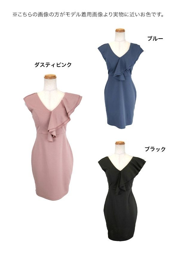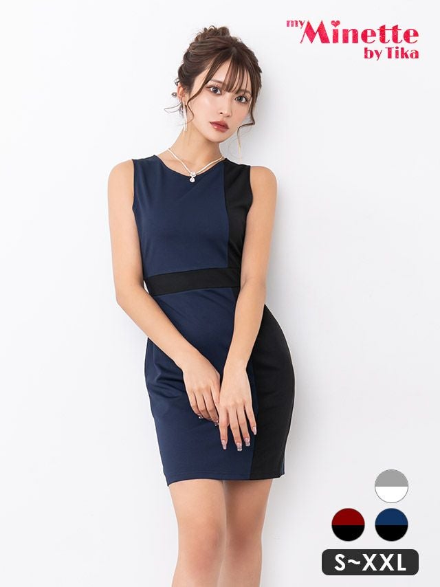 ミニドレス プチプラ 新人 タイト セクシー ラウンジ ノースリーブ 低身長 谷間 ウエストベルト風 Vネック シンプル ワンカラー ハイウエスト ネイビー キャバドレス (ちぴたん着用/S〜XXLサイズ対応) | myMinette/マイミネット