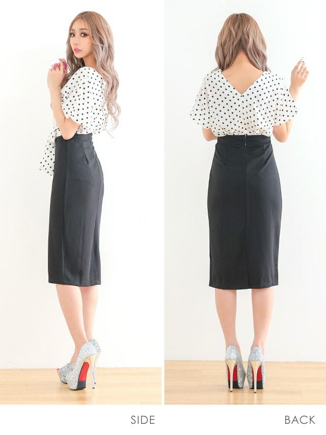 ノースリーブドット柄スクエアネックノースリーブフリル袖プチプラタイトミニドレス (Sサイズ~XXXXLサイズ) (林姫奈妙/キャバドレス着用)[myMinette/マイミネット]