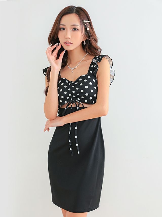 ノースリーブシンプルワンカラーノースリーブフリル袖ドット柄プチプラタイトミニドレス (Sサイズ~XXXXLサイズ) (林姫奈妙/キャバドレス着用)[myMinette/マイミネット]