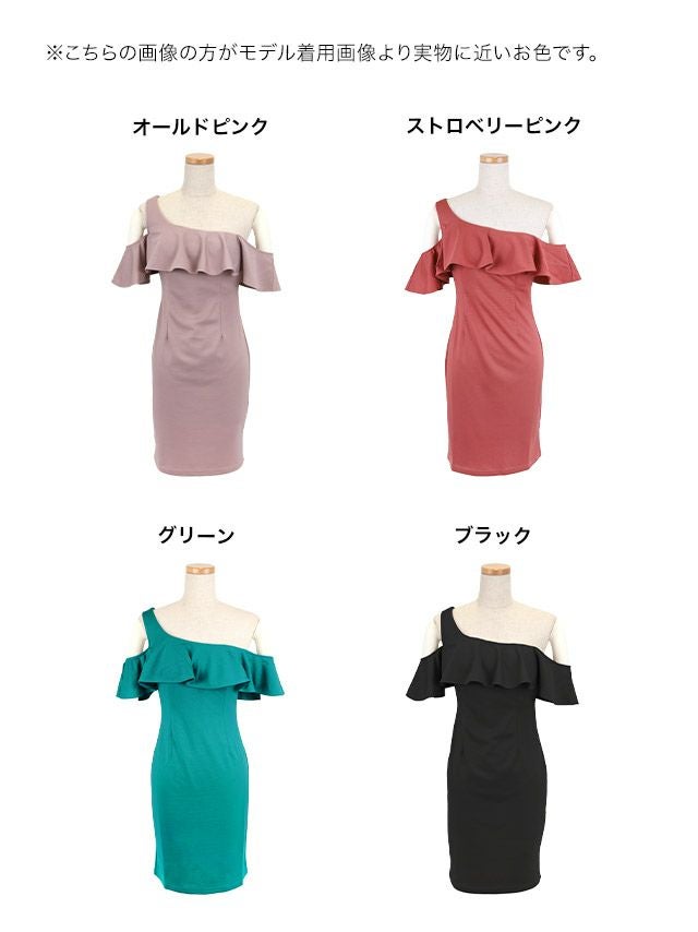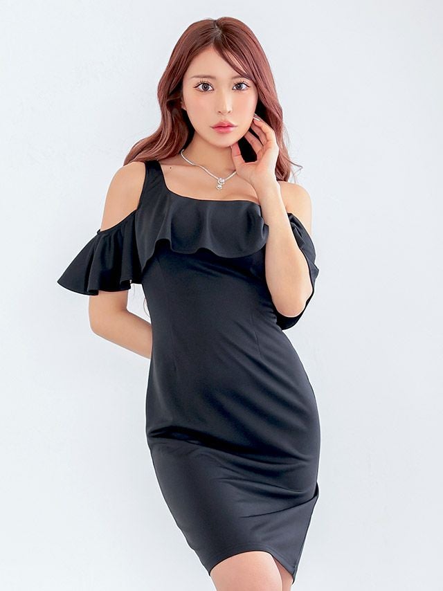 ノースリーブシンプルワンカラーノースリーブフリル袖タイトミニドレス (Sサイズ~XXXXLサイズ) (林姫奈妙/キャバドレス着用)[myMinette/マイミネット]