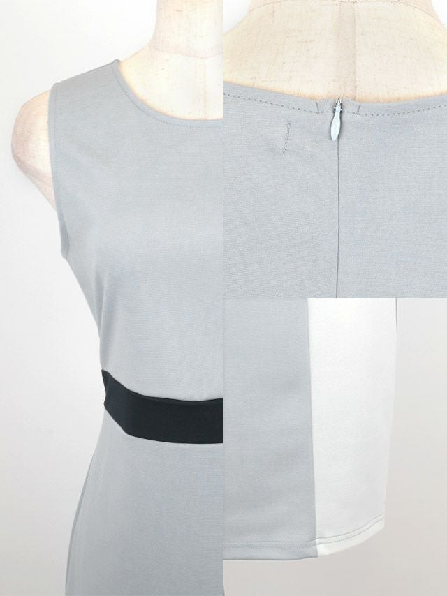 ノースリーブノースリーブフリルデザインシンプルタイトプチプラ膝丈ドレス (Sサイズ~XXXXLサイズ) (なぎ/キャバドレス着用)[myMinette/マイミネット]