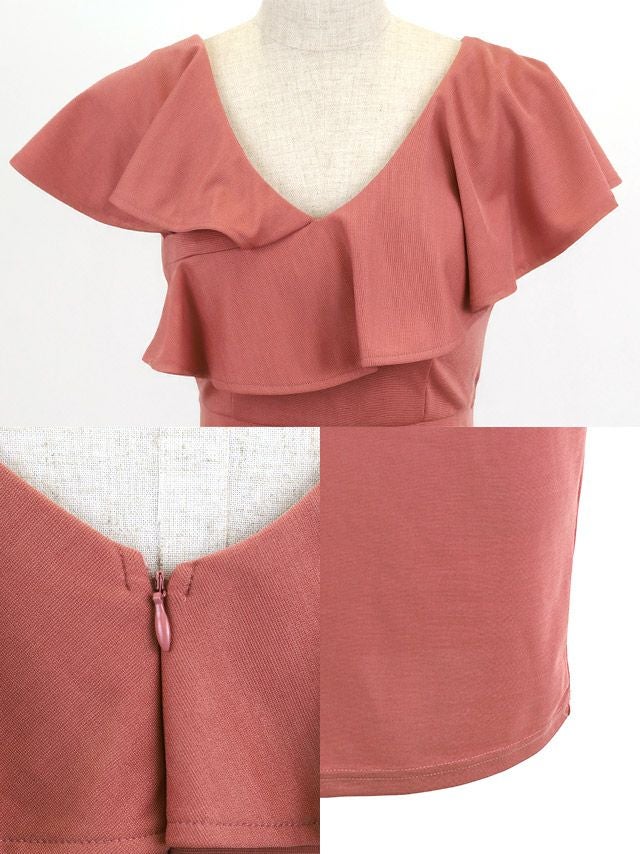 ノースリーブノースリーブフリル袖デザインワンカラープチプラタイトミニドレス (Sサイズ~XXXXLサイズ) (林姫奈妙/キャバドレス着用)[myMinette/マイミネット]