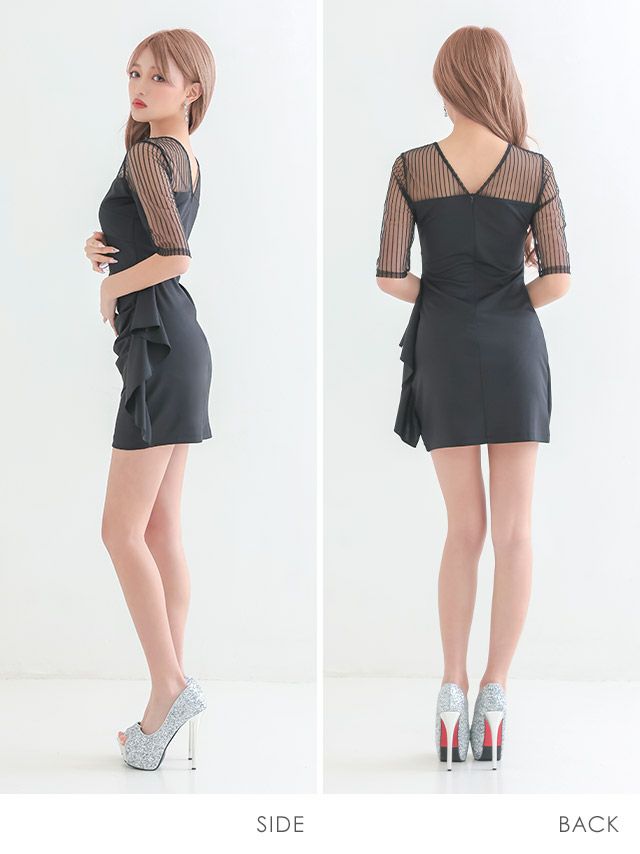 キャバドレス 安い 激安 ミニ丈 キャバクラ クラブ ラウンジ 五分丈袖 シースルー ストライプ タイト ミニドレスプチプラドレス
