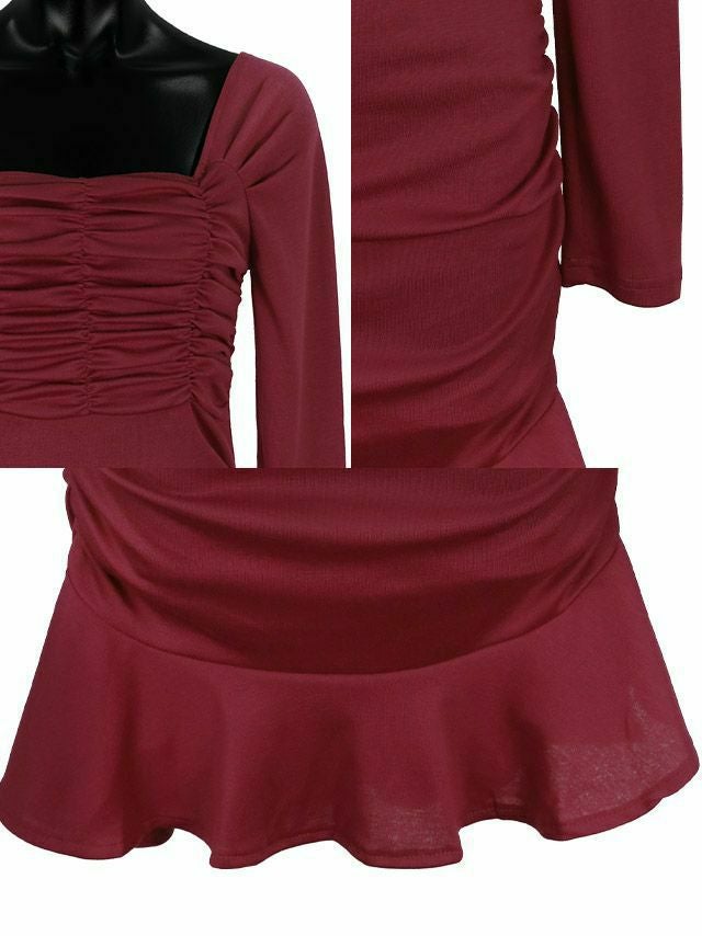 オフショルギャザー裾フリル長袖タイトミニドレス