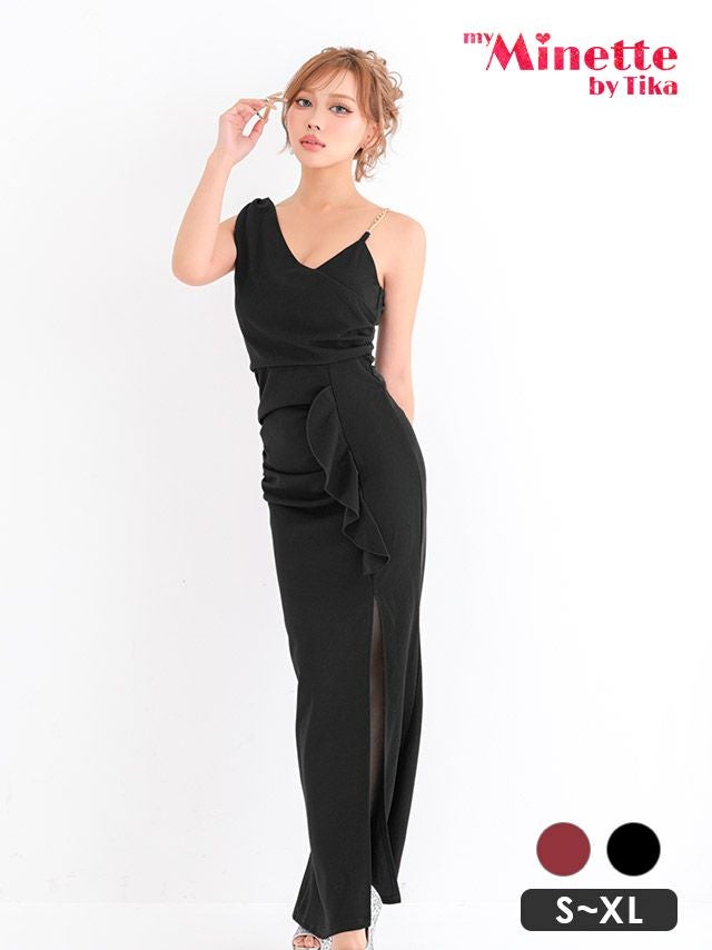 5. [新作] ロングドレス プチプラ ギャル タイト セクシー ノースリーブ ラウンジ 谷間 シンプル ワインレッド キャバドレス (きぃぃりぷ着用/S~XL対応) | myMinette/マイミネット