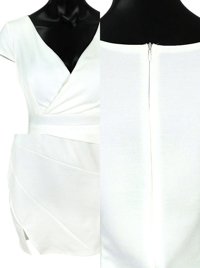 ミニドレス プチプラ 新人 タイト ラウンジ 半袖 低身長 谷間 スリット 黒 キャバドレスサイドバック