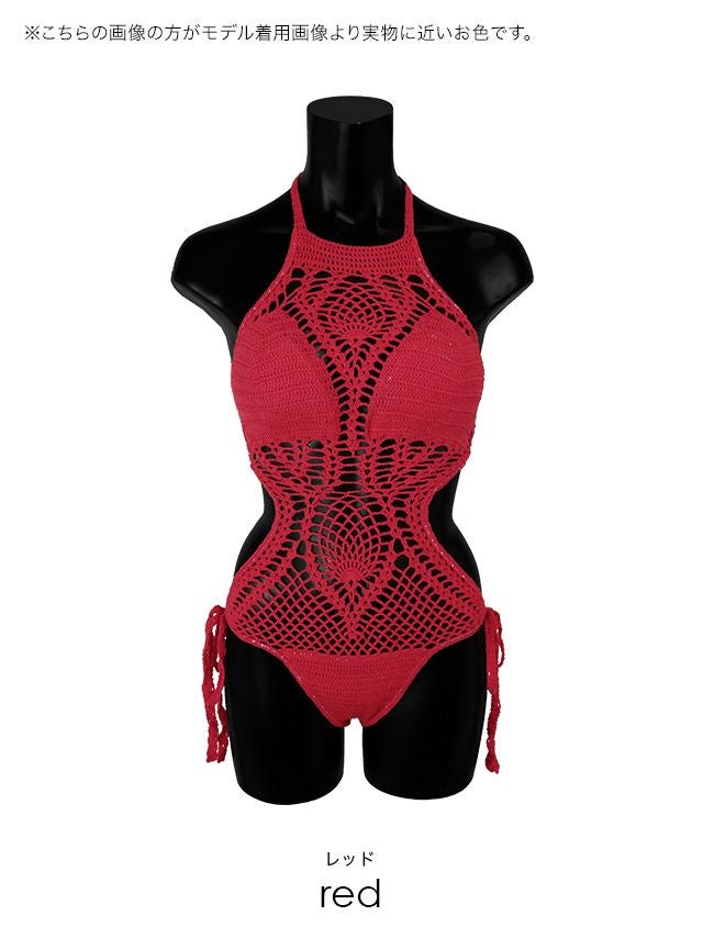 プチプラ 水着 セクシー モノキニ くびれ ホルターネック かぎ編み ビキニの色展開