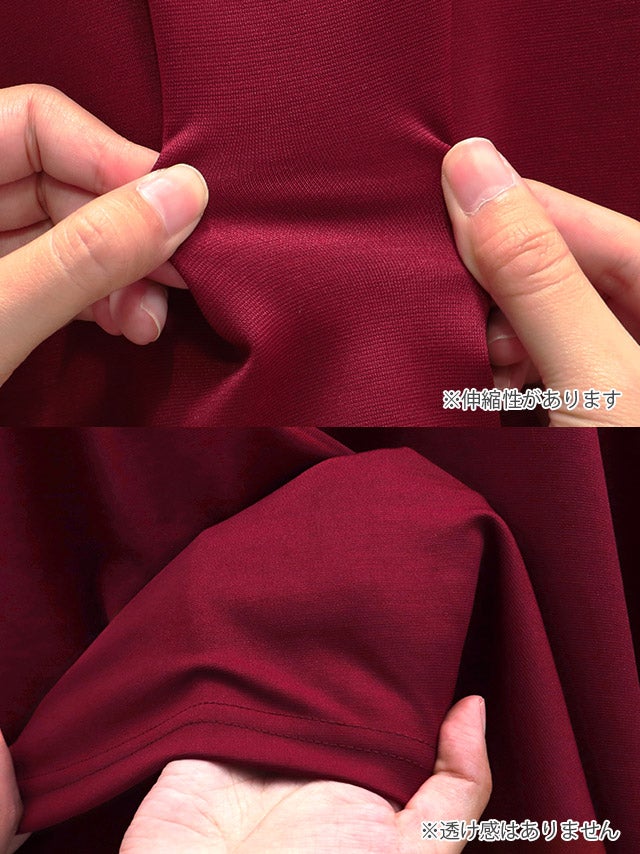 ミニドレス プチプラ 新人 長袖 袖あり ワンピース フレア シアー袖 ドット柄 低身長 ガーリー ワインレッド キャバドレスディティール2