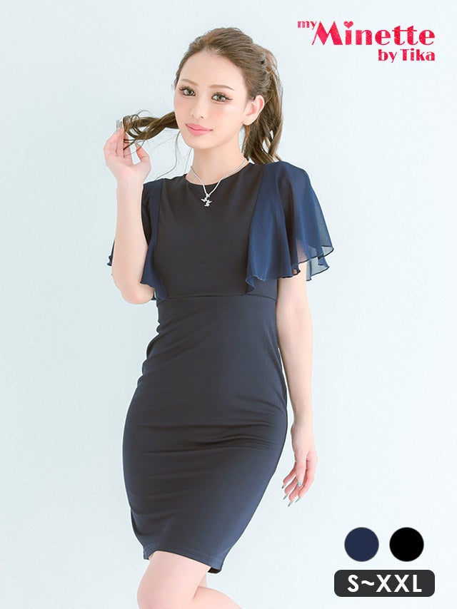 3. [新作] 膝丈ドレス プチプラ 新人 タイト ワンピース ラウンジ 半袖 シアー袖 低身長 胸元隠し スナック 同伴 シンプル ワンカラー 黒 キャバドレス (ちぴたん着用/S〜XXLサイズ対応) | myMinette/マイミネット