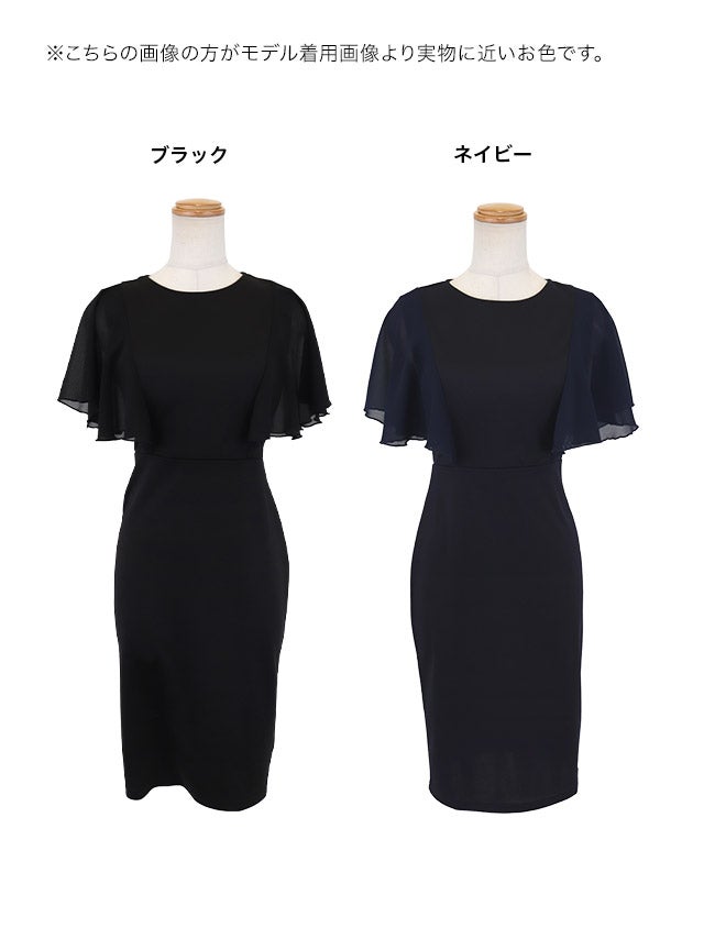 膝丈ドレス プチプラ 新人 タイト ワンピース ラウンジ 半袖 シアー袖 低身長 胸元隠し スナック 同伴 シンプル ワンカラー 黒 キャバドレス商品画像2