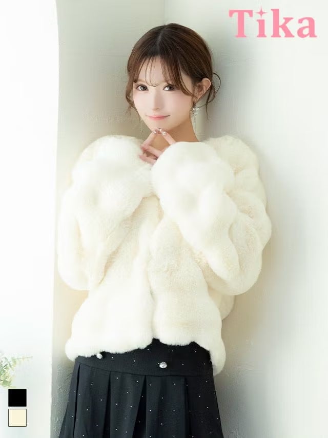 4. [新作] ボレロ ジャケット ノーカラー フェイクファー ショート丈 長袖 体型カバー 羽織り (若林萌々着用) [Tika/ティカ]