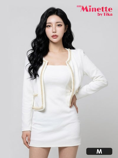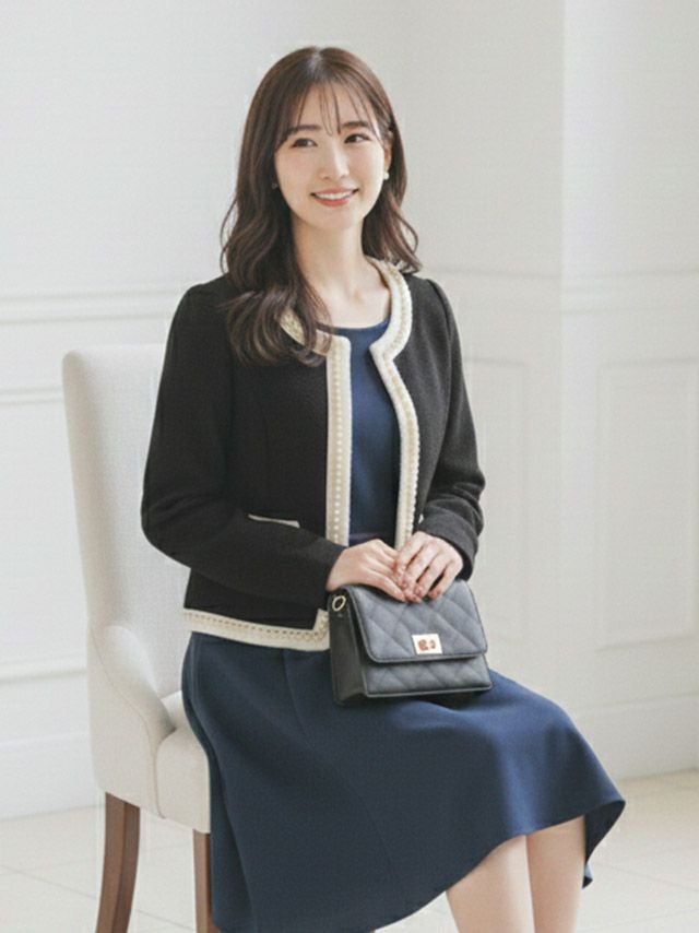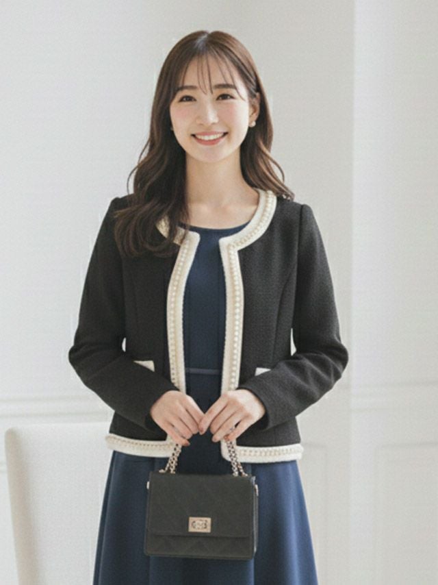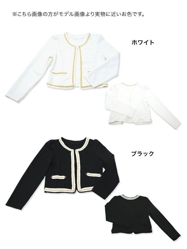 4. [新作] パール縁取り ノーカラー ワッフル ボレロ ジャケット [myMinette/マイミネット]