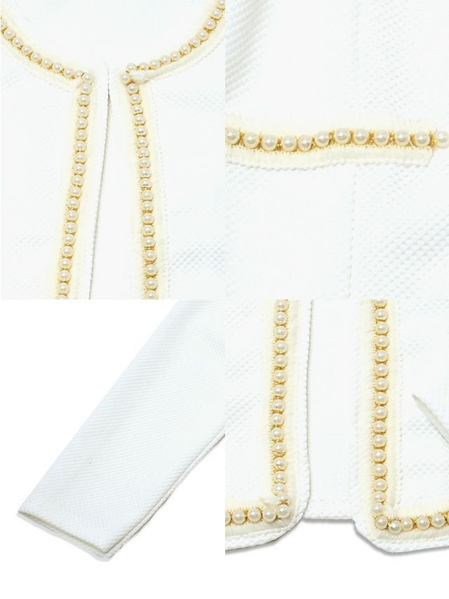 ノーカラーワッフルパール縁取りボレロジャケット
