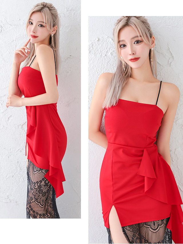 キャバドレス 安い 激安 ミニ丈 キャバクラ クラブ ラウンジ キャミソール レース バイカラー タイト ロングドレス プチプラドレス