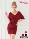 3. [SALE] ウエストリボン 半袖 シンプル タイト Vネック プチプラ ワンピース ミニドレス (Sサイズ~XXXLサイズ) (波北かほ/キャバドレス着用) [myMinette/マイミネット]