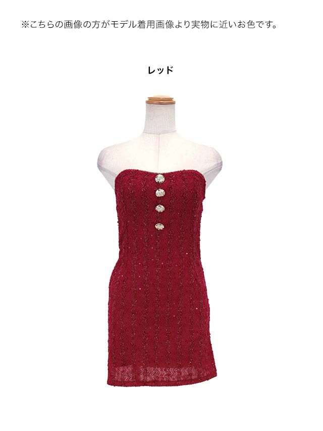 [SALE] ベアトップ スパンコール ツイード タイト セクシー ミニドレス (Sサイズ~Lサイズ) (あいみん/キャバドレス着用) [myMinette/マイミネット]