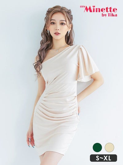 4. [SALE] ミニドレス プチプラ 新人 タイト ラウンジ ワンショル 半袖 低身長 胸元隠し 同伴 ウエスト 緑 キャバドレス (せいせい着用/S~XLサイズ対応) | myMinette/マイミネット