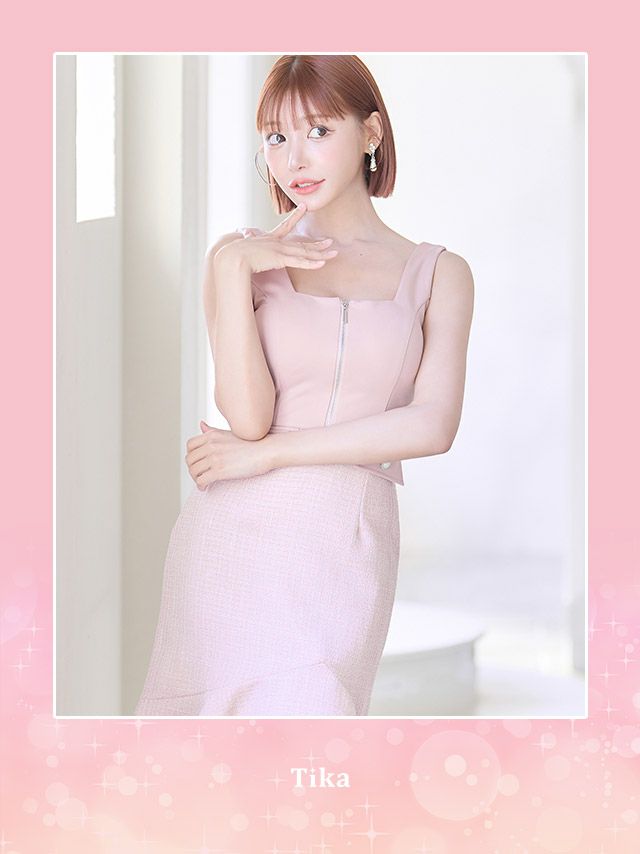 4. ノースリーブバストジップ切り替えツイード裾フリル膝丈テールドレス (Sサイズ~Lサイズ) (浦西ひかる/キャバドレス着用) [Tika/ティカ]