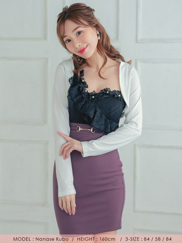 羽織り カーディガン 白 黒 キャバクラ myMinette マイミネット ロングスリーブショート丈ストレッチボレロ