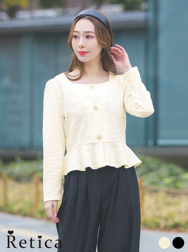 3. スクエアネック裾フリルロングスリーブボレロカーディガン