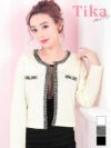 3. パール付きノーカラーニットボレロカーディガン (浦西ひかる/羽織り着用)