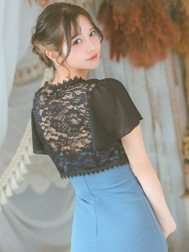 5. 半袖 シフォン ショート丈 フラワーレース ボレロ (黒嵜菜々子/羽織り着用) [Tika/ティカ]