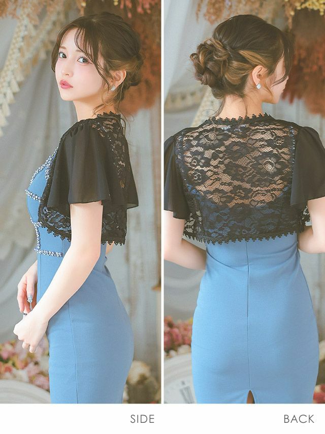 半袖シフォンショート丈レースボレロのサイドバック