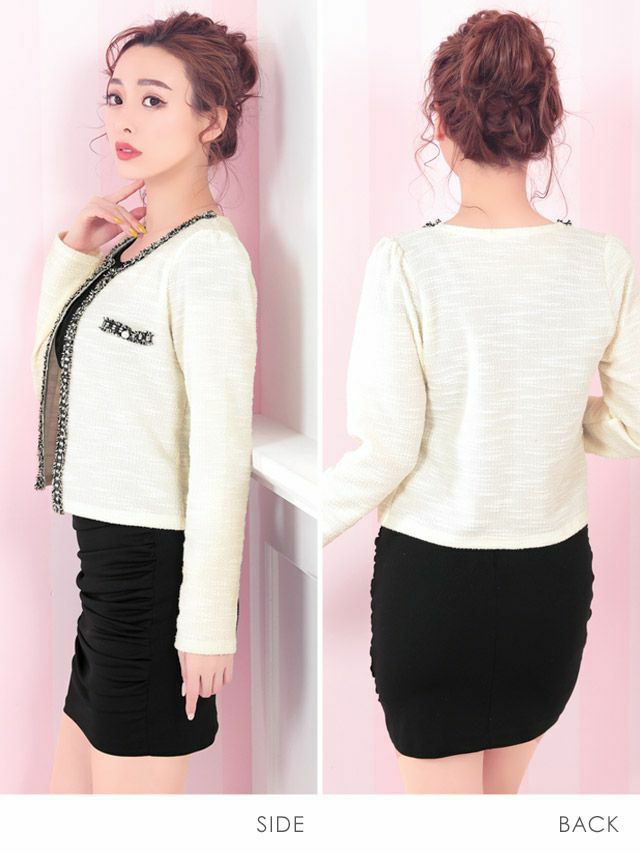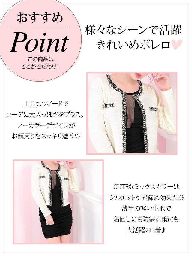 パーティー アイボリー グレー ブラック レディース カーディガン 結婚式 二次会 myMinette マイミネット ニット ツイード ボレロ フォーマル カーディガン