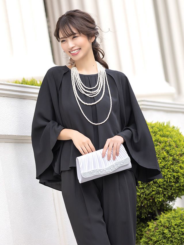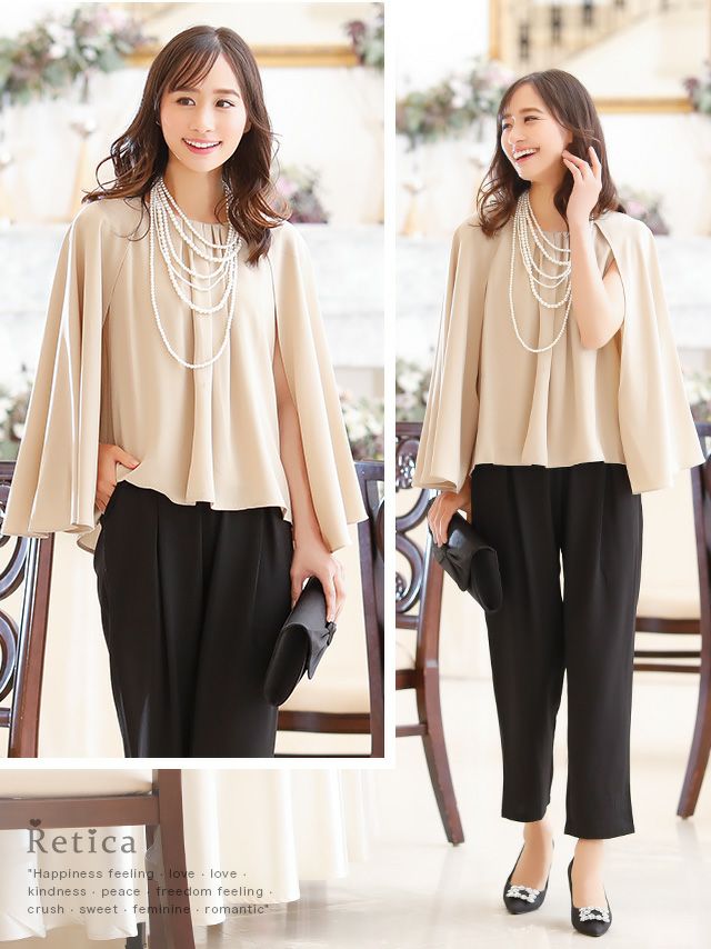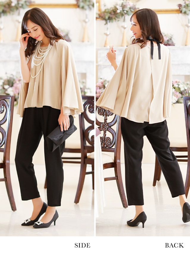 ボリュームケープデザイントップステーパード大人ハンサム結婚式パーティーパンツドレス