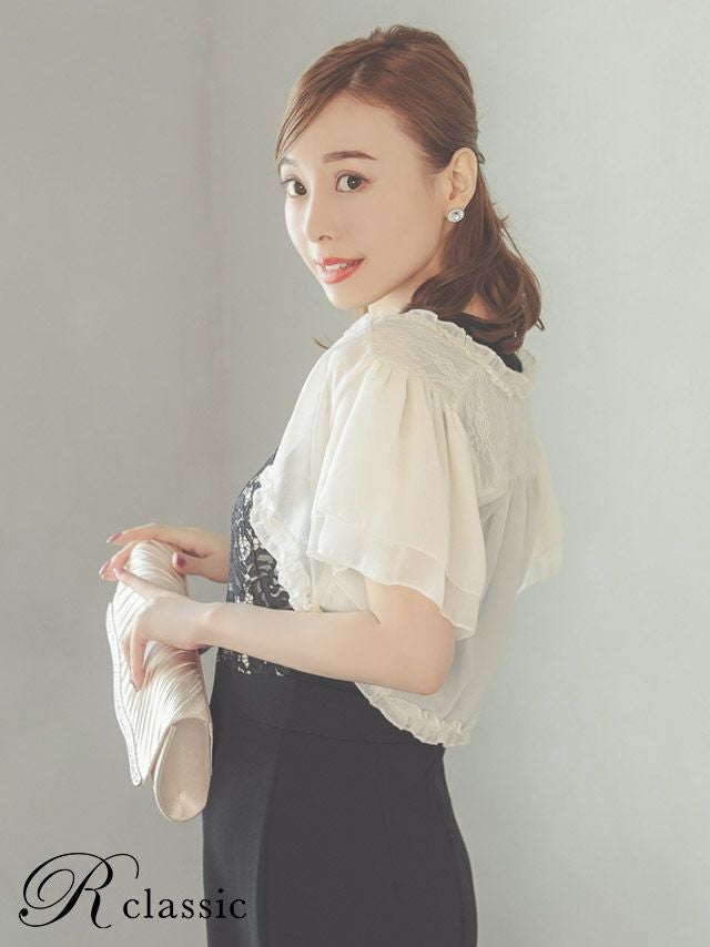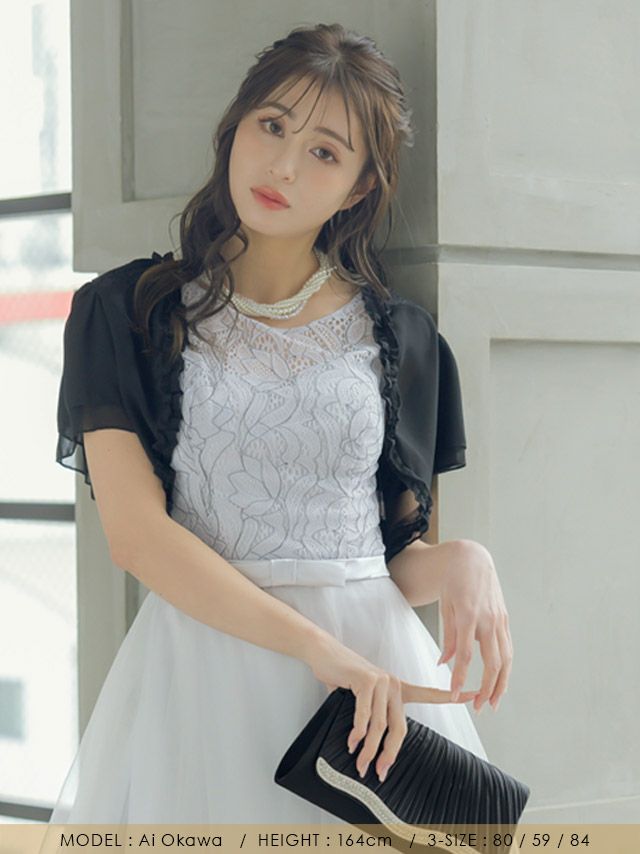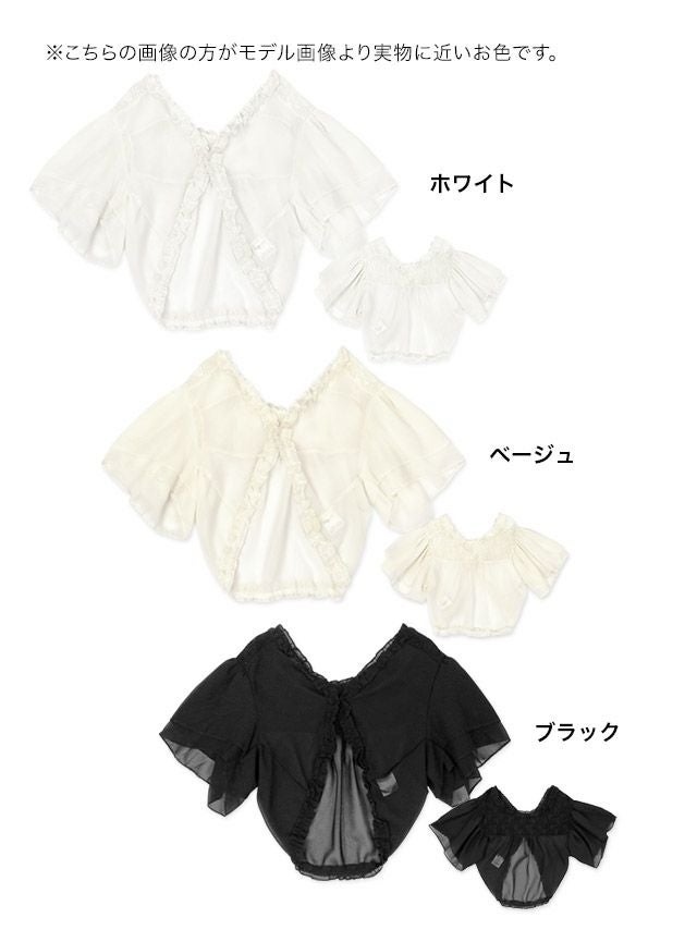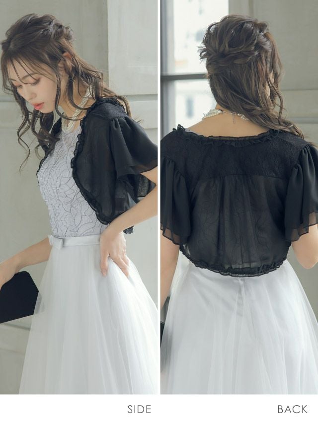 ボレロ 結婚式 羽織り パーティー 二次会 体型カバー お呼ばれ myMinette マイミネット シースルー シフォン フリル ショート ボレロ