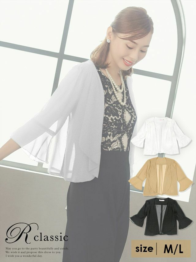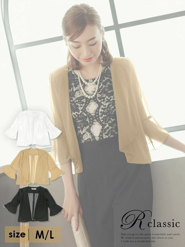 羽織り 結婚式 二次会 パーティー お呼ばれ フォーマル ボレロ myMinette マイミネット スリーブ シフォン フリル ミニ丈 ボレロ