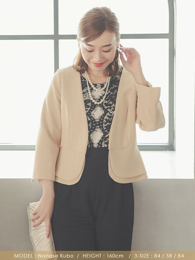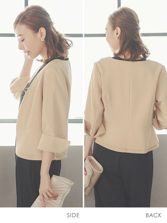 ボレロ 結婚式 ジャケット 羽織り お呼ばれ 二次会 フォーマル セレモニー myMinette マイミネット ビジネス 七分袖 ペプラム ジャケット
