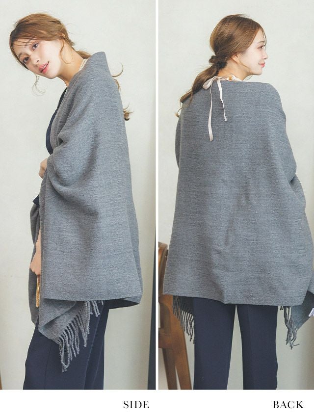 アームホール付きフリンジデザイン大判ストール
