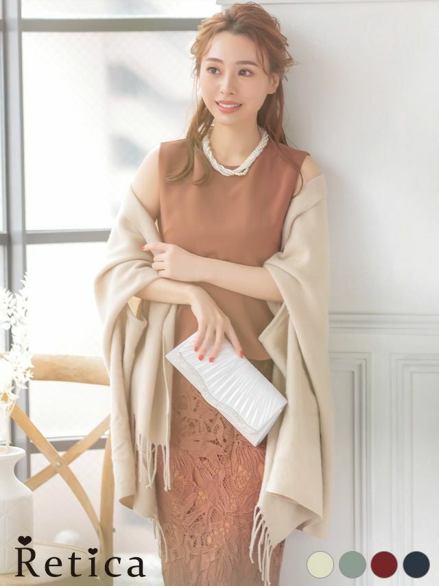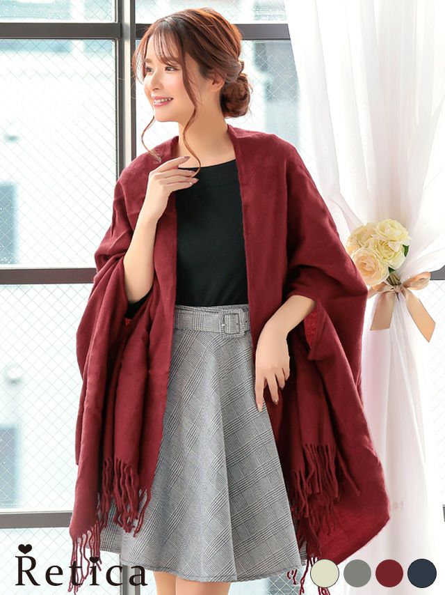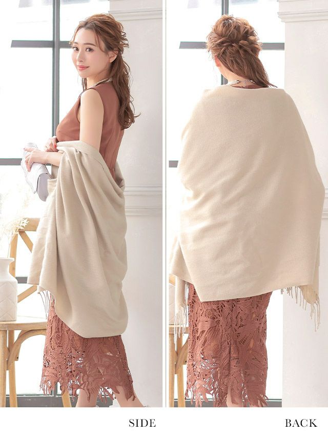 パーティードレス 羽織り ショール ストール カーディガン ボレロ myMinette マイミネット アームホール付きフリンジデザイン大判ストール