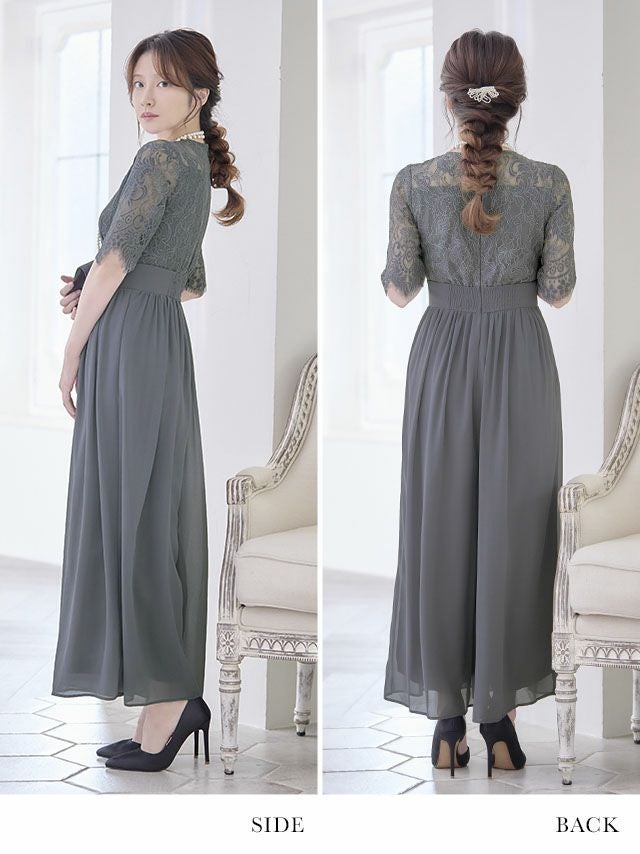 4. レーストップハイウエスト切り替え大人結婚式パーティーワイドパンツドレス