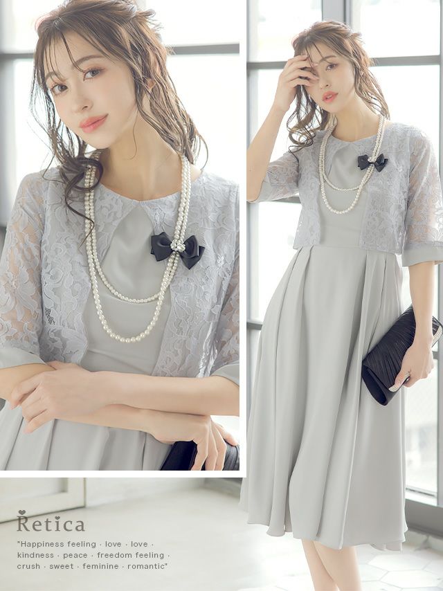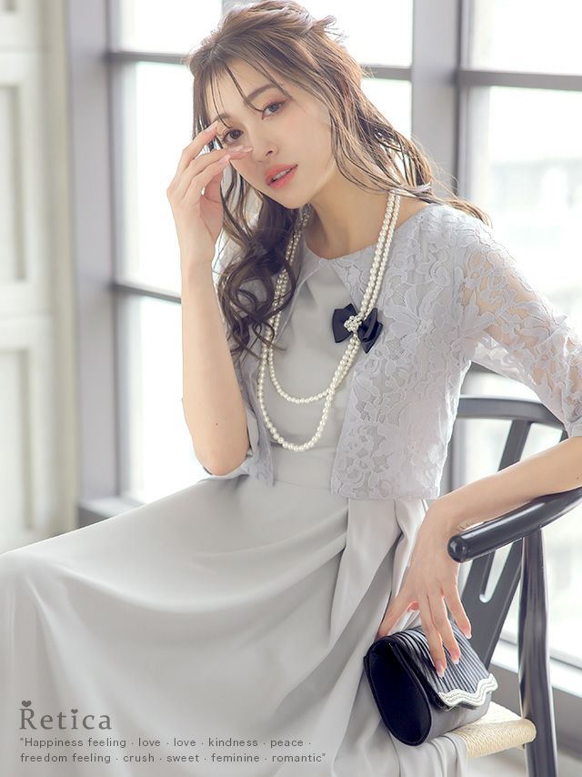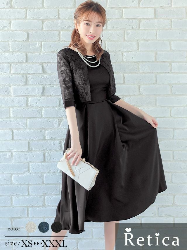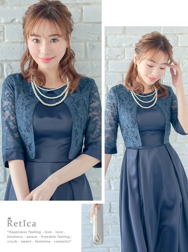 結婚式 お呼ばれ パーティー myMinette マイミネット フラワーレースボレロデザインサテンミモレ丈結婚式パーティードレス