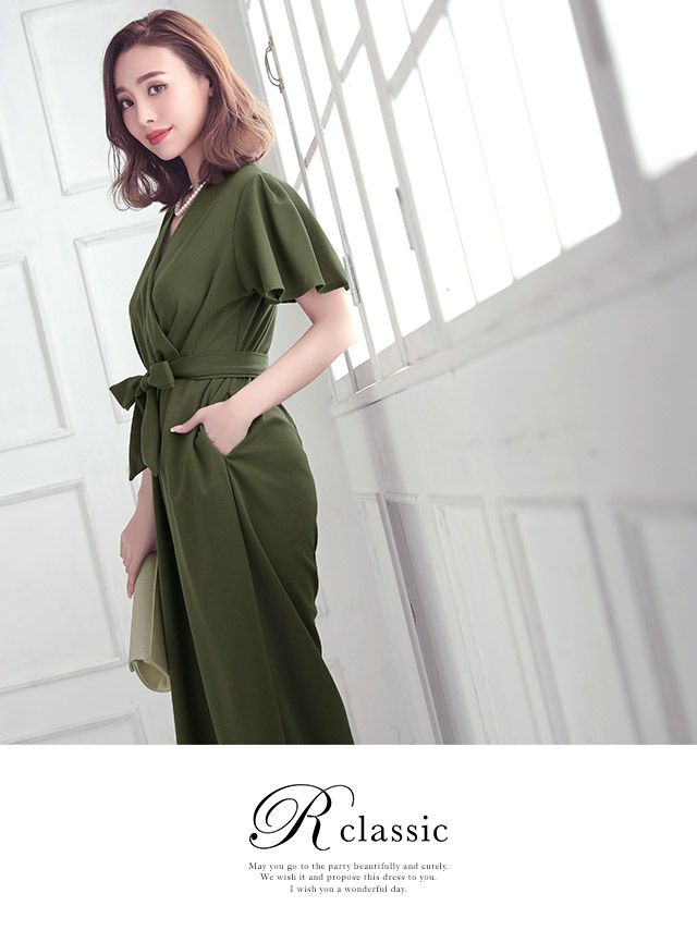 4. カシュクールネックウエストリボン大人ハンサムスタイルアップ結婚式パーティーパンツドレス
