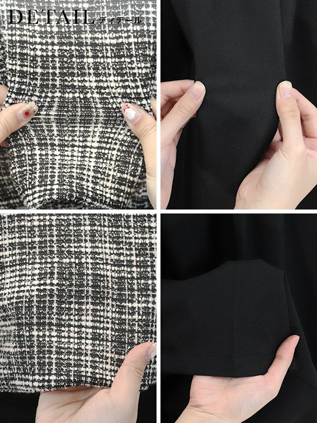 4. コサージュ付きノーカラーツイードジャケット&ビスチェセレモニーパンツスーツ
