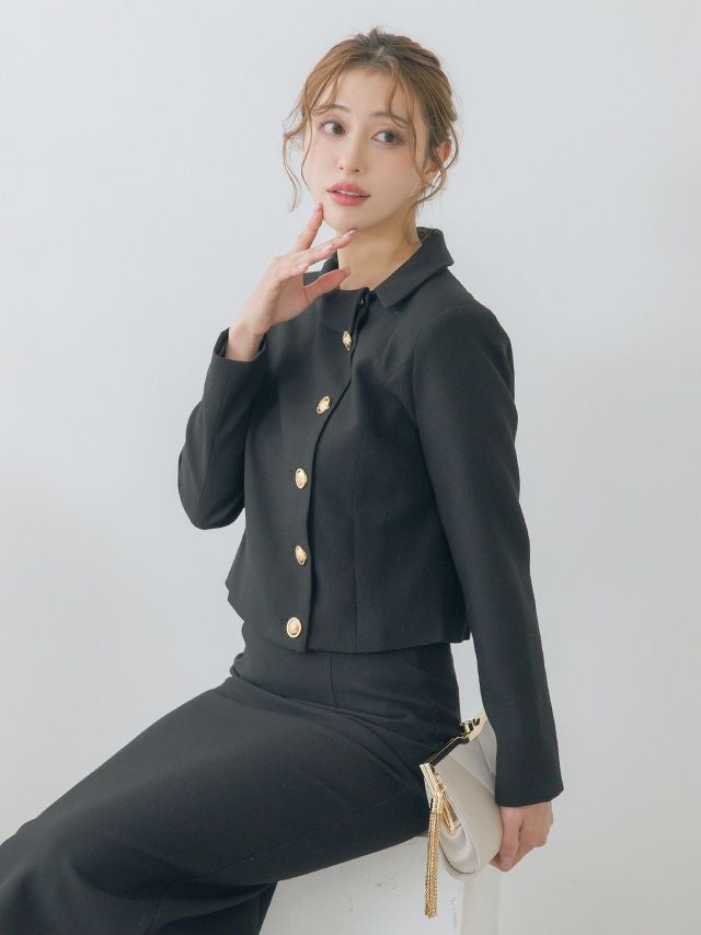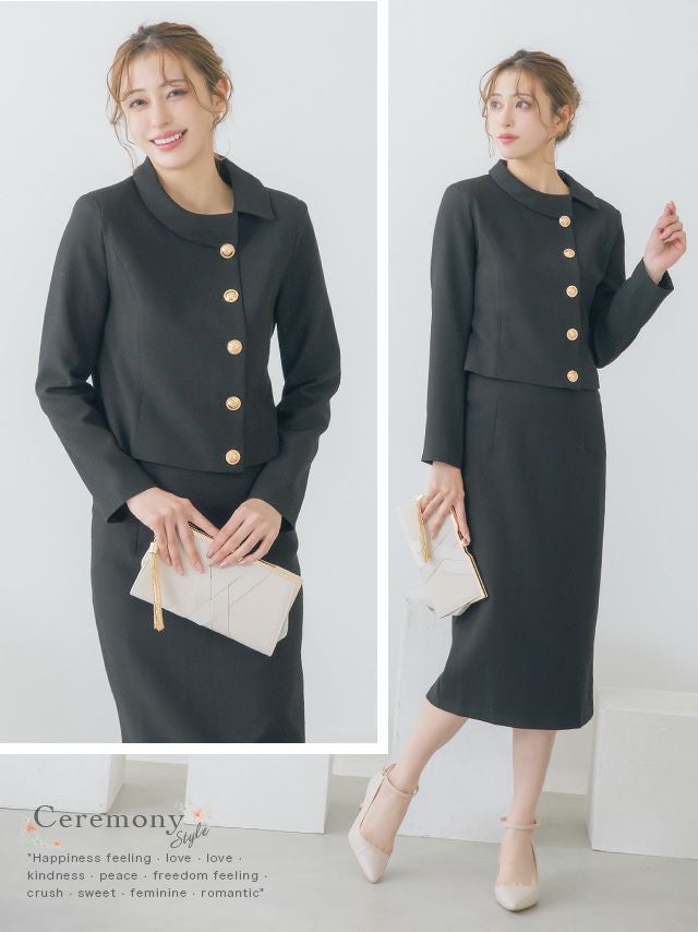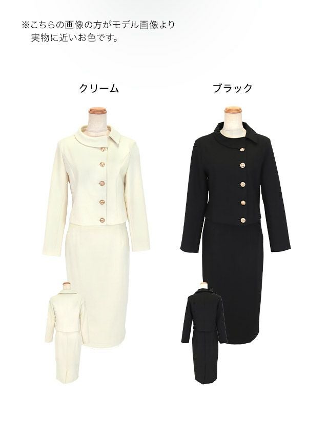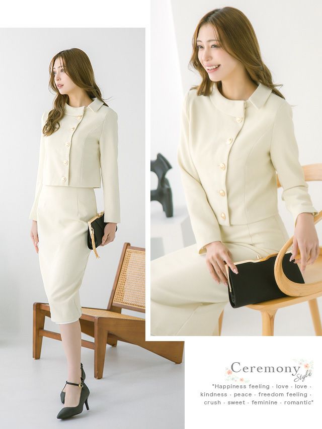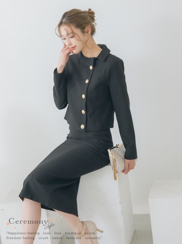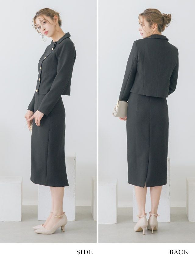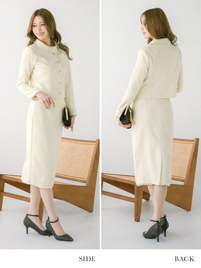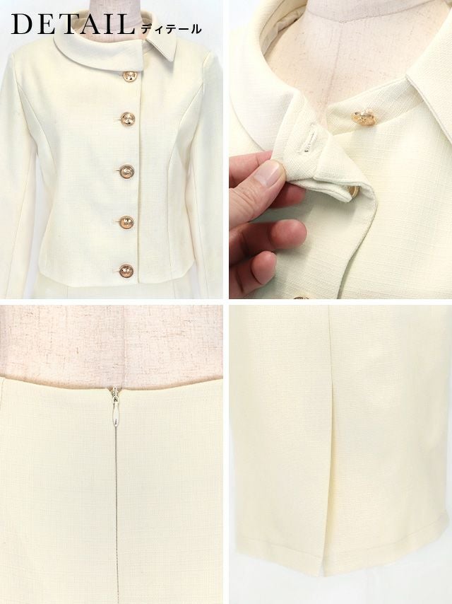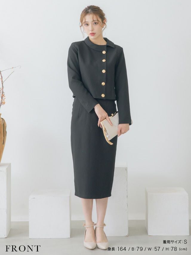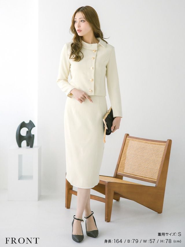ラウンドネックアシメジャケット&タイトミモレスカートパーティーフォーマルセレモニースーツ