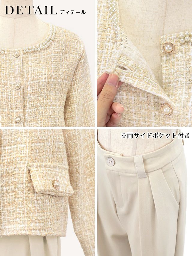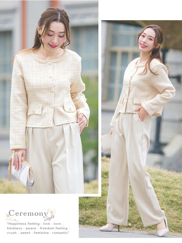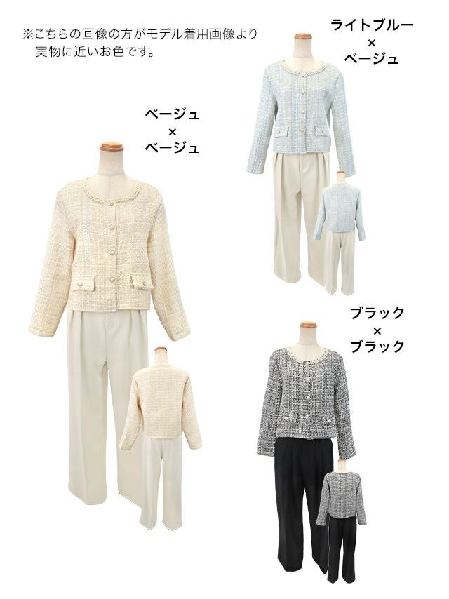 パールネックツイードジャケット&ワイドパンツセレモニースーツ
