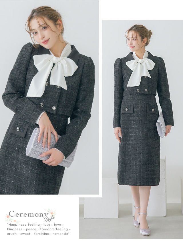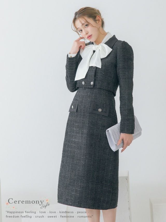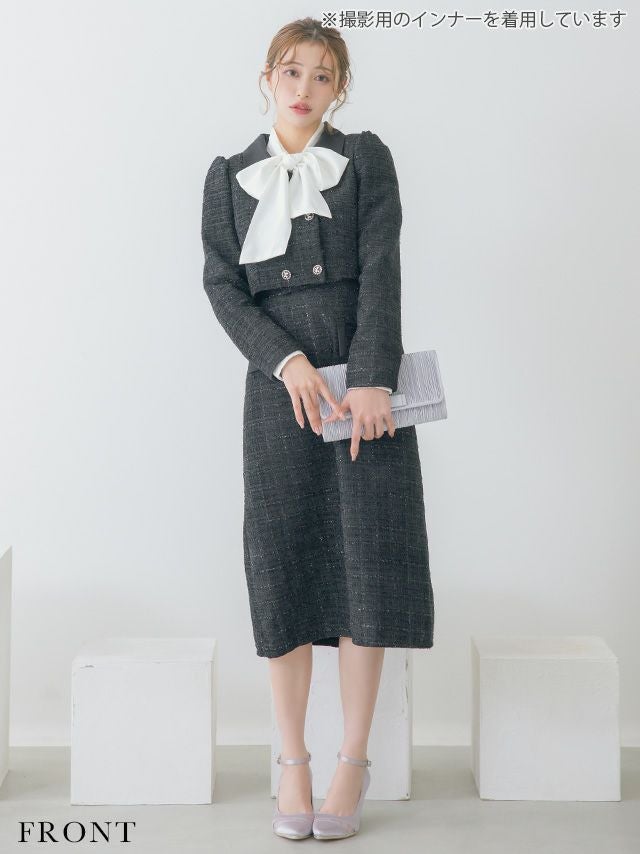 3. ダブルボタンショートジャケット&ジャンバー膝下ワンピーススタイルツイードセレモニースーツ [Retica/レティカ]