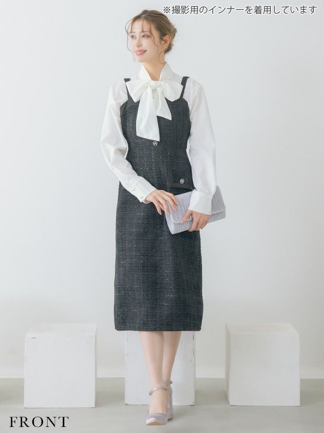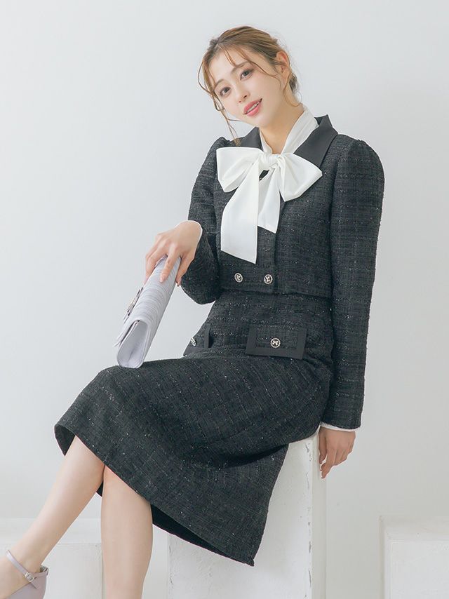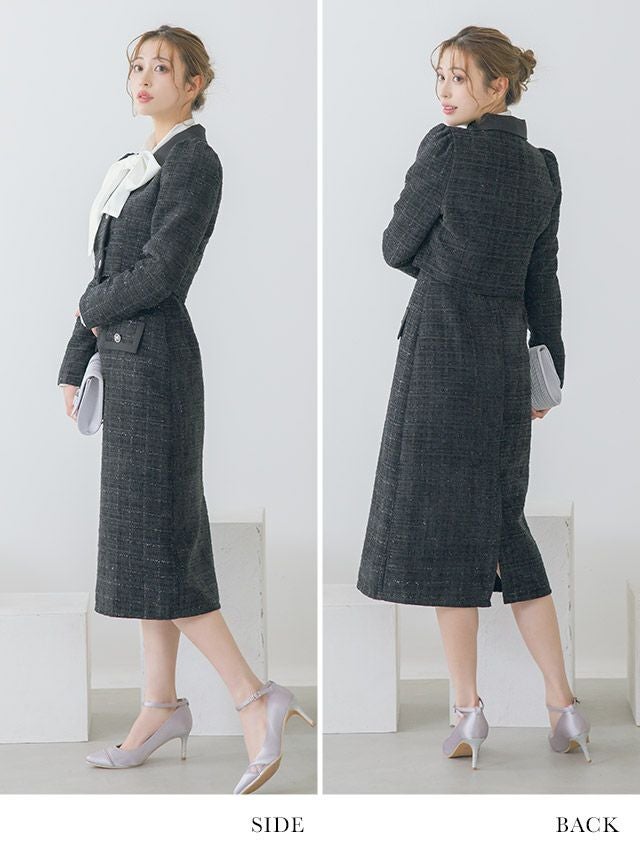 4. ダブルボタンショートジャケット&ジャンバー膝下ワンピーススタイルツイードセレモニースーツ [Retica/レティカ]