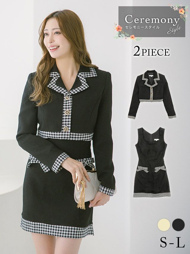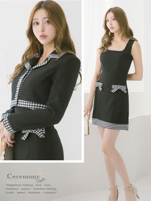 パイピングデザインリボンワンピースセレモニースーツ